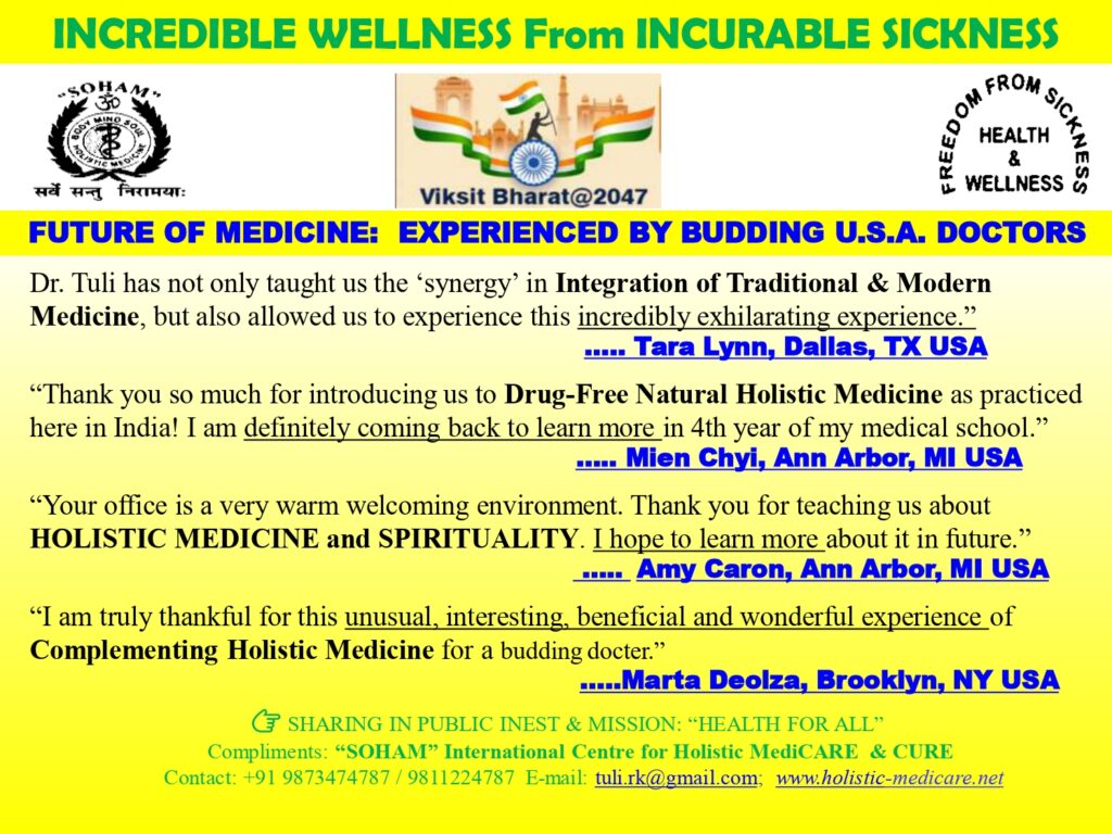 Articles 24Apr, 2026 "SOHAM" - Holistic Medicine Future of Medicine: Experienced by budding USA doctors