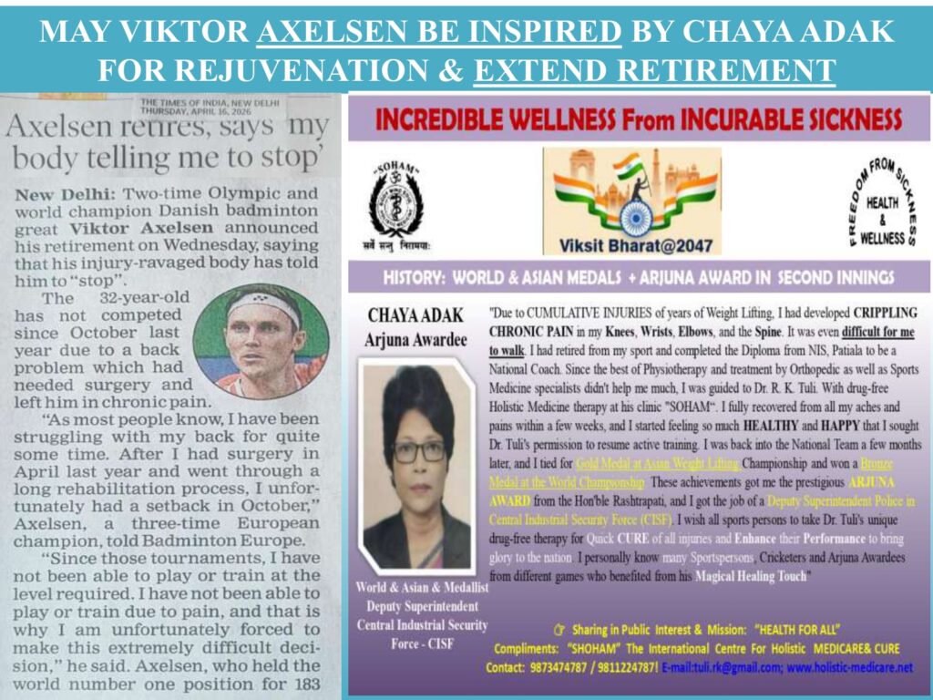 Articles 24Apr, 2026 "SOHAM" - Holistic Medicine May Viktor Axelsen be inspired by Chaya Adak for rejuvenation & extend retirement